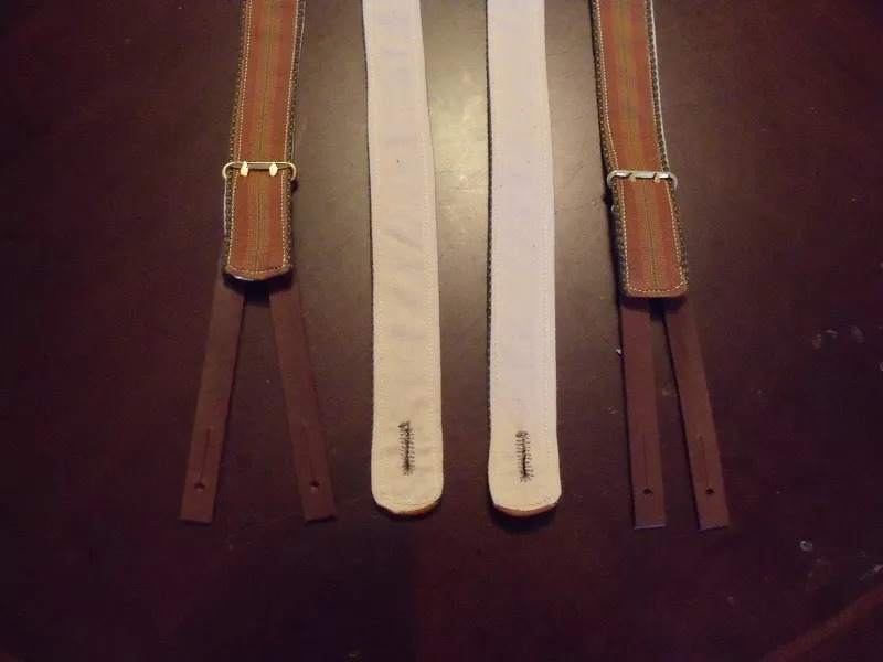 Made from layered cotton shirting, and with machine sewn edges done with an antique chainstitch sewing machine, with hand sewn buttonholes and hand made leather end tabs in a split riser configuration. All the hand work in these is done with our superb German linen thread, and is very durable. These are perfect “field suspenders” and will withstand the rigors of the campaign. These excellent reproductions are available in a wide variety of colors and are a steal at $35.00 a set!