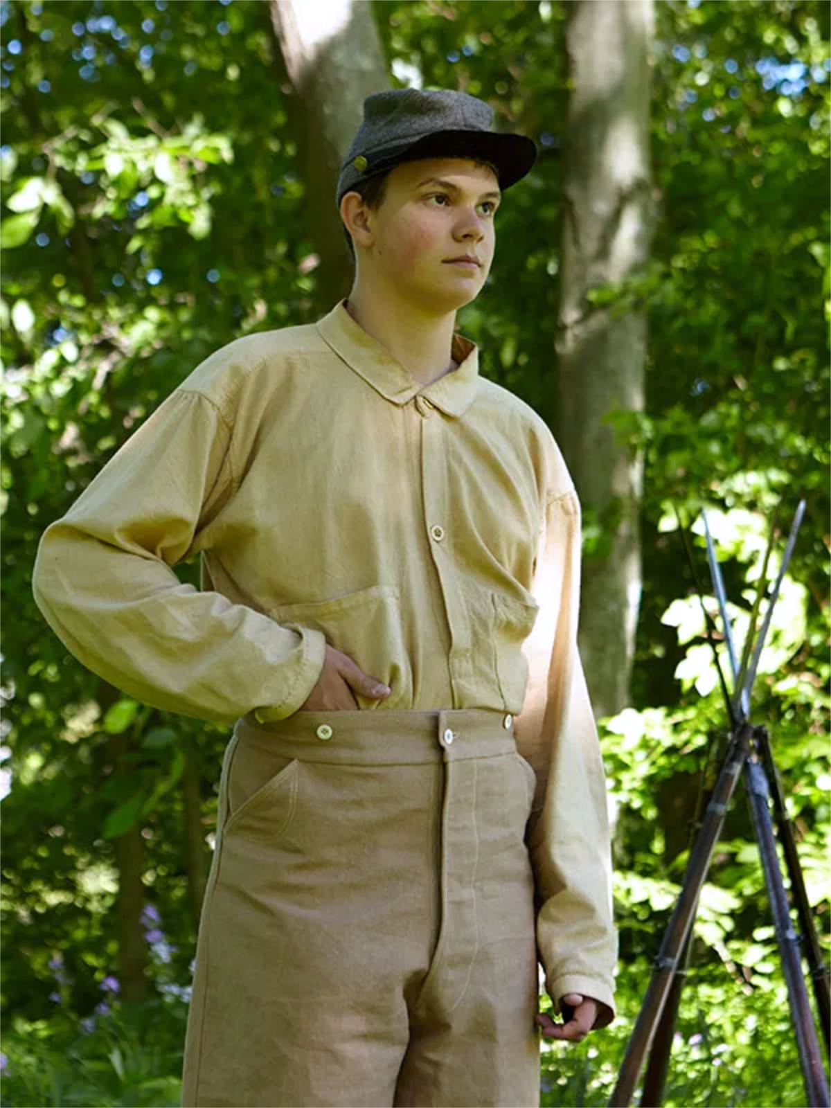 Entirely hand sewn and made of cotton osnaburg, these shirts are based upon an original example in a private collection that we have personally examined. The shirts feature a single button placket with buttons at the collar and cuffs, and two breast pockets as per the original. These shirts are perfect for a wide range of Confederate impressions, and very comfortable to boot!
