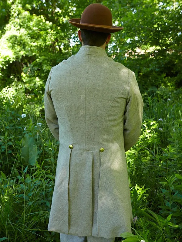 The most versatile of all Confederate garments, an untrimmed Confederate frock coat will allow the living historian to portray a number of Confederate impressions from all three of the major theaters of the war, and from any period of the war. For the Confederate living historian with a limited budget, (aren’t we all) an untrimmed frock is the most economical choice, as it will serve as an “all purpose” coat, negating the need to for various different kinds of jackets. Our reproduction frock coats are available in your choice of material from our current stock of CS fabrics (or from logwood dyed jean for a $30.00 upcharge.) They come standard with a seven button front, fully lined in cotton osnaburg, and one interior chest pocket. You will have your choice of federal eagle, Block "I", or wood buttons, and the coats come automatically with larger buttonholes so you can swap out your favorite button if you like. Note: The waist of our coats are two inches smaller than the chest measurement, so if you are fuller in the waist you will need to order the coat based upon your larger measurement.