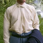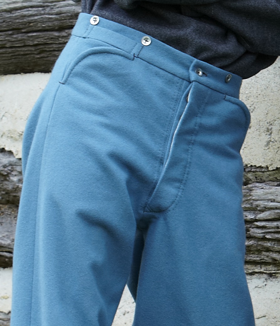 Many living historians are prohibited from developing their impressions because of the costly nature of authentic goods. Very often the materials that go into a particular garment can be had for an excellent price, but because of the labor involved, the prices can quickly go into the triple figures. The simple truth is, if you can do five basic stitches (whip stitch, top stitch, running stitch, buttonhole stitch, and back stitch) you can make just about any 19th century garment if given the right instruc-tions. Our kits will include everything you need to make yourself a top quality garment except the needle and the time it takes to put it together. If you carefully follow our instructions, using the color pictures and contacting us with any specific questions you might have, you can reproduce an entirely handsewn garment for a fraction of the cost of a finished good from a retailer or manufacturer. The kits will include all the pieces needed to make the garment (properly labeled,) detailed instructions with color pictures throughout, thread, and even a ball of wax.