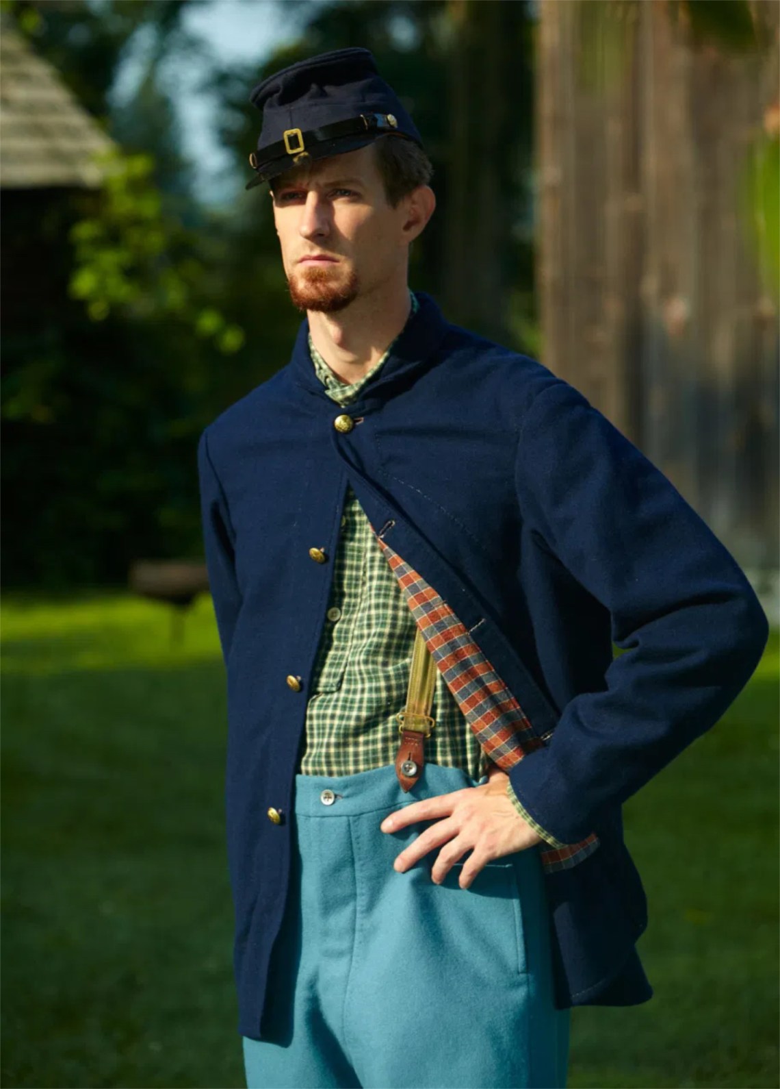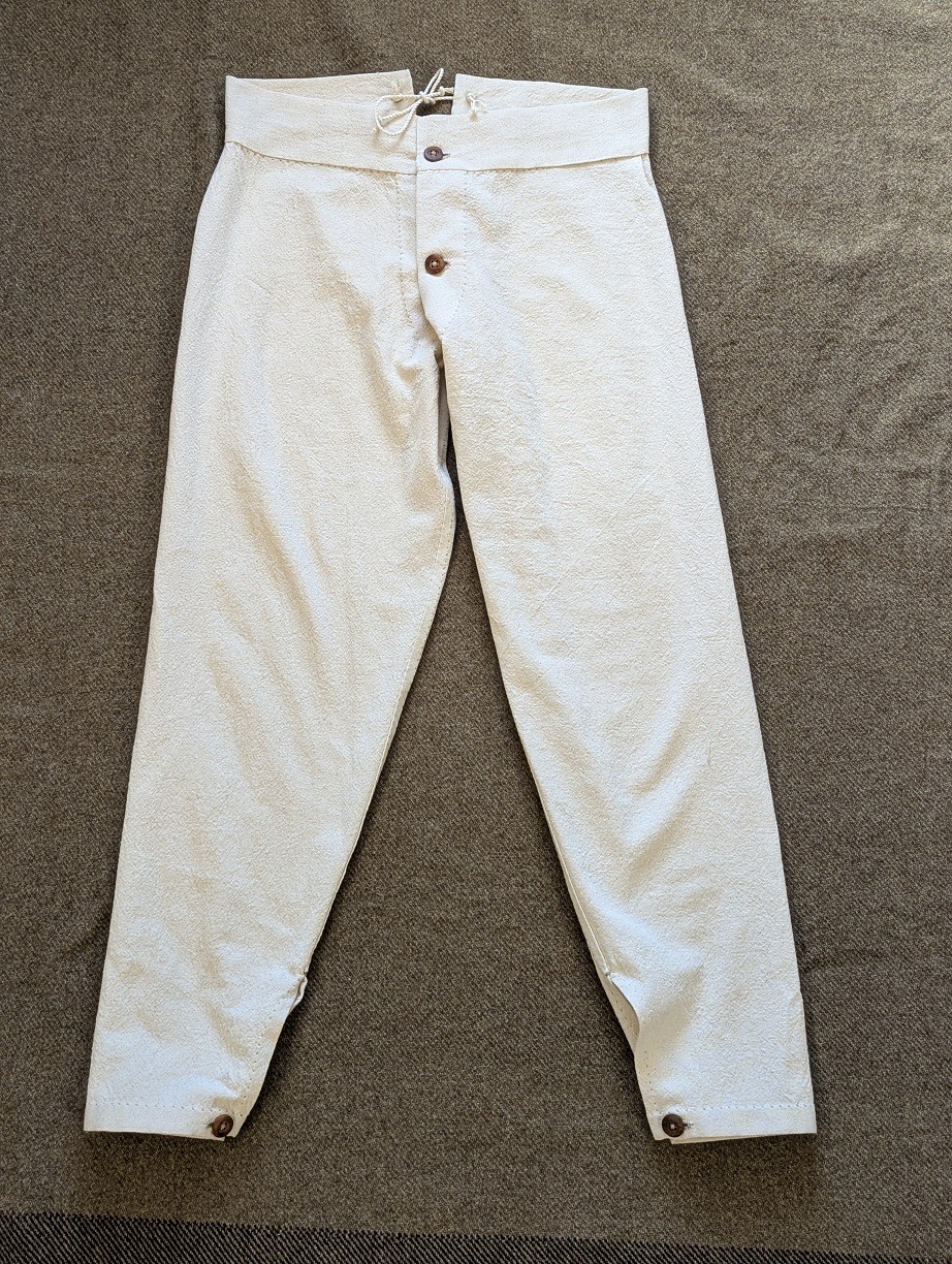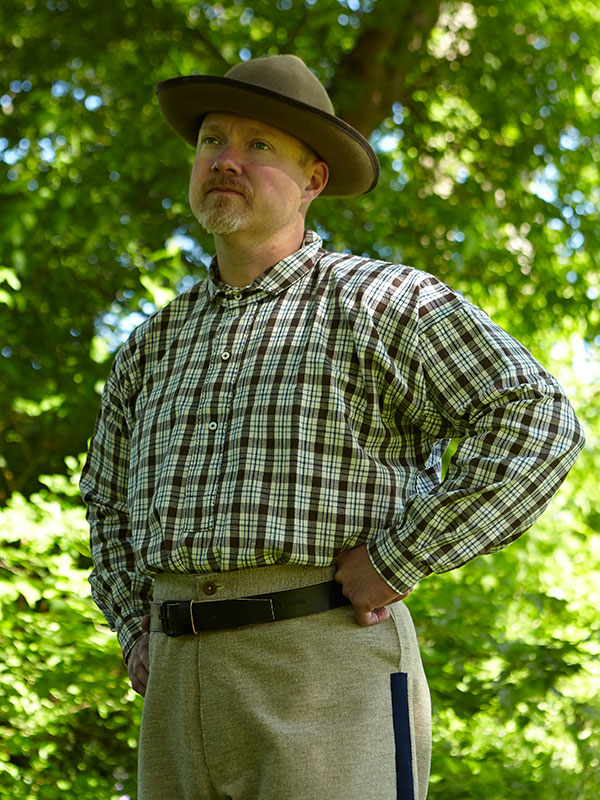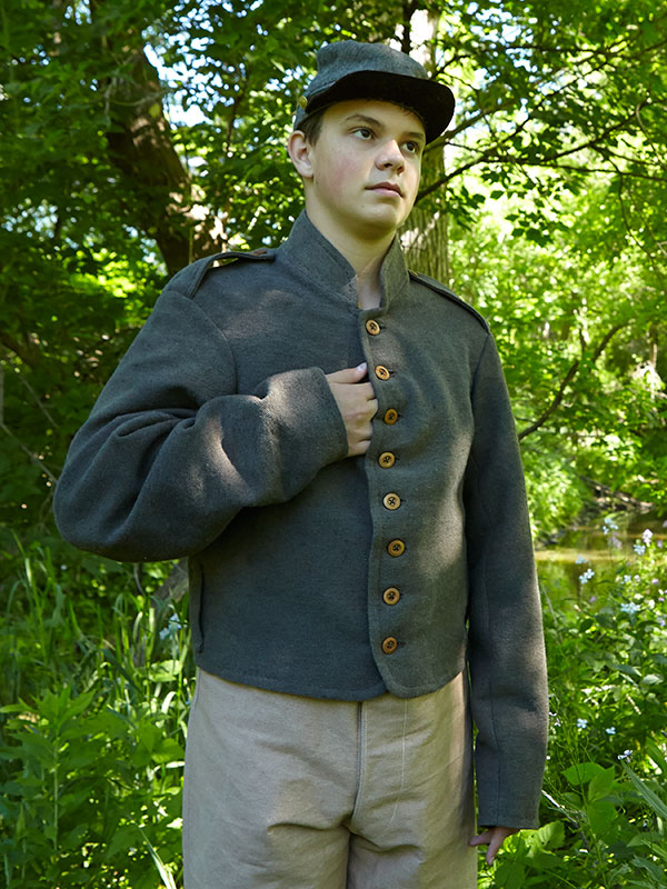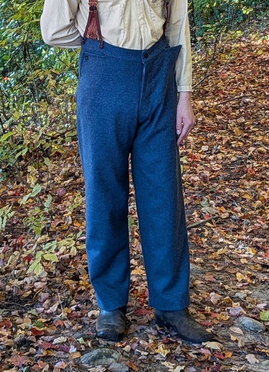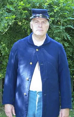 “Dan supplied me with the kits for the sack coat, trousers and drawers; all are of the Schuylkill arsenal pattern, as I was portraying a soldier from the 1st Delaware Infantry Regiment, just after the battle of Fredericksburg. Having no experience at hand sewing, I was very grateful for the color photo/text instructions that came with the kits, all materials were of the correct weight and weave, even the thread was perfect, each kit came with more than enough thread. Probably the best part of dealing with Wambaugh & White was the support/advice Dan gave me, he was always there when I called on the phone. All in all, I must say that it was a very good experience.” Jim Worrell