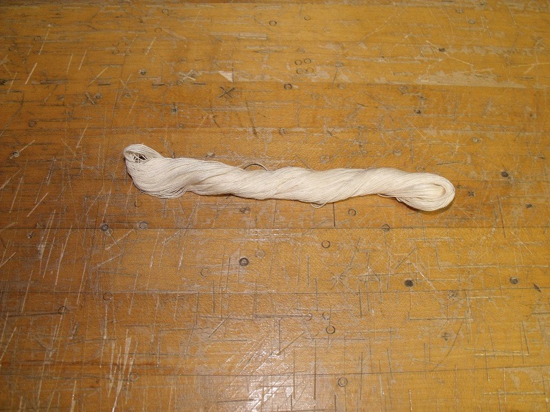 Step 1: Find the place where a simple single knot has been tied in the skein (the thread will cross over the majority of the skein.)