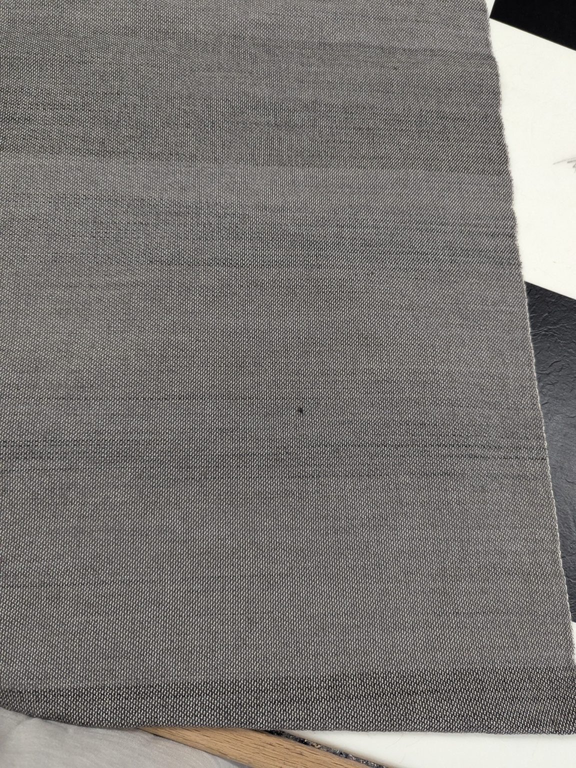 Wool/cotton jean cloth yarn dyed with logwood in house and custom woven for us on a shuttle loom. Features horizontal color variances through, with larger stripes as a result of the authentic processes with which the material is produced. Truly as faithful a reproduction as can possibly be made today! Logwood was an extremely common dyestuff for military clothing used by the CS army. It starts life as a medium gray, but quickly fades to a "dirty tan" shade. Not currently available as yardage, but available for kits and finished garments at a nominal upcharge.
