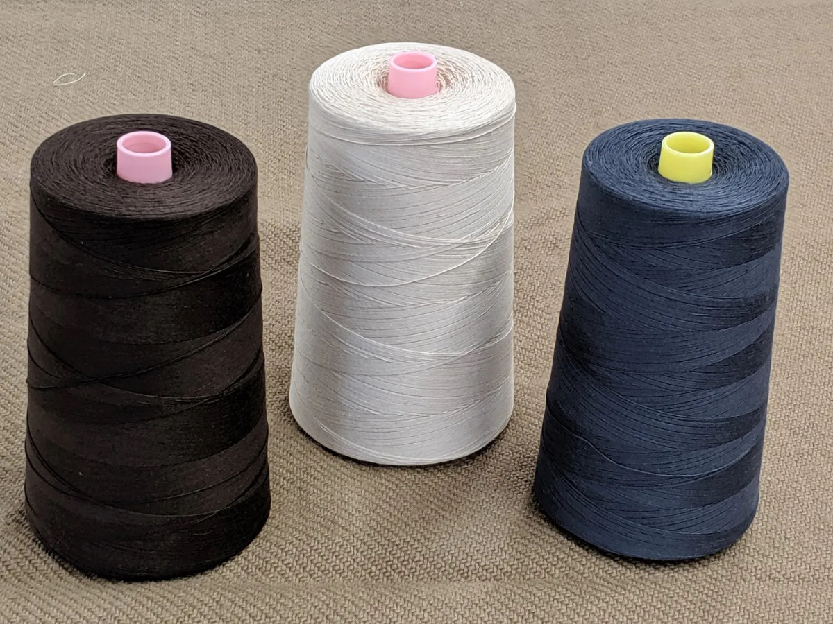 6,000 yard cone of four-cord size 30 100% cotton thread. We have this specially made for us with no finish (mercerization, glace, etc) which makes it an excellent and authentic thread for both hand and machine sewing. Available in two colors: natural, and blue. We recommend size 18 universal needles for machine sewing.