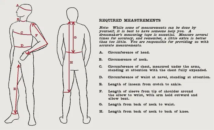 Please fill out the size chart below when placing your order. We will save your sizes and keep them on file (so you will not need to resubmit every time you place an order.) Not all measurements will be needed for every order), but if you provide us with everything at one time you won't have to measure next time. NOTE: most of our garments are reproductions of issue items, not tailor-made and custom fit to your body. Though you may have provided us a number of measurements, do not expect it to fit like it was custom made for you, instead expect it to fit like the government issued it to you (just like original clothing.)