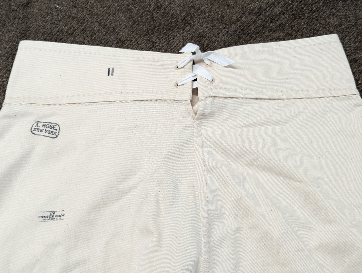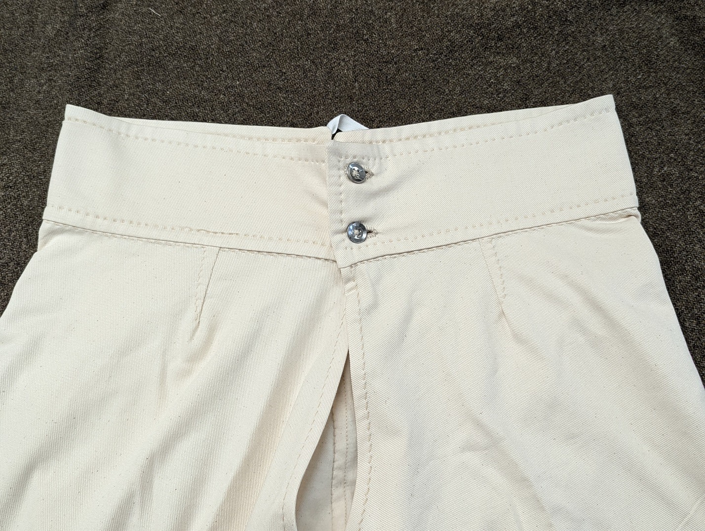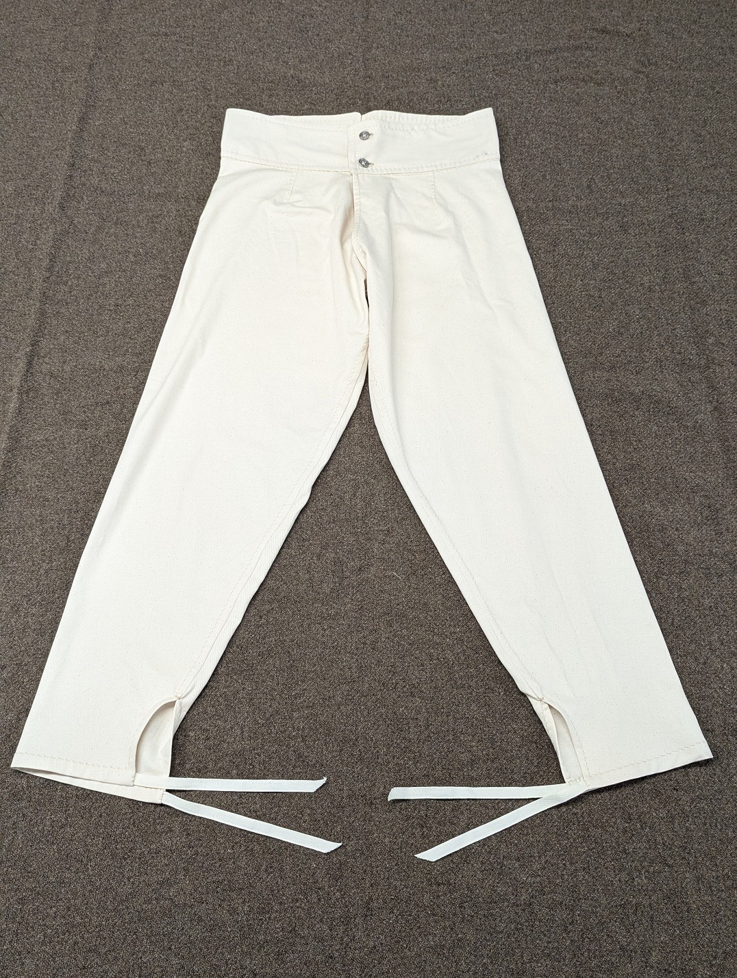 Simple drawers made from canton flannel are one of the most important parts of a living historians impression from a comfort and health standpoint. Enlistedmen were alloted three pairs of drawers in the first year of service, and two pairs in each subsequent years. Cotton drawers act as the first layer against the skin, wicking away moisture keeping the wearer cool and dry. Our reproduction US issue drawers are based on an original pair on the Troiani collection, which were made to the regulation pattern by contractor Alvin Rose. They feature a two button waistband closure, adjustment laces in the back of the waistband, and ties at the cuffs. They are made of canton flannel, a medium weight fabric that is durable on the outside, and soft on the inside. Our drawers are available in both standard grade (with interior seams machine sewn) and entirely hand sewn (as per the originals.)
